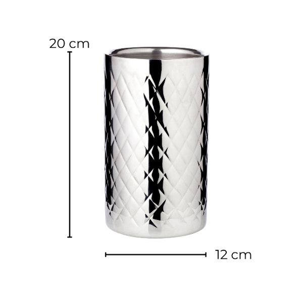Den er lavet af rustfrit stål af høj kvalitet og en fugtig klud er tilstrækkelig til at rengøre køleren. Glansen fra vinkøleren bevares permanent.