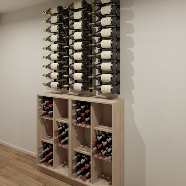 Løsningen giver plads til i alt 198 vinflasker, hvor magnumflasker får den opbevaring, de fortjener – både sikkert, overskueligt og flot præsenteret.