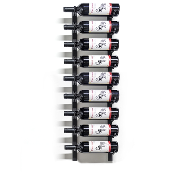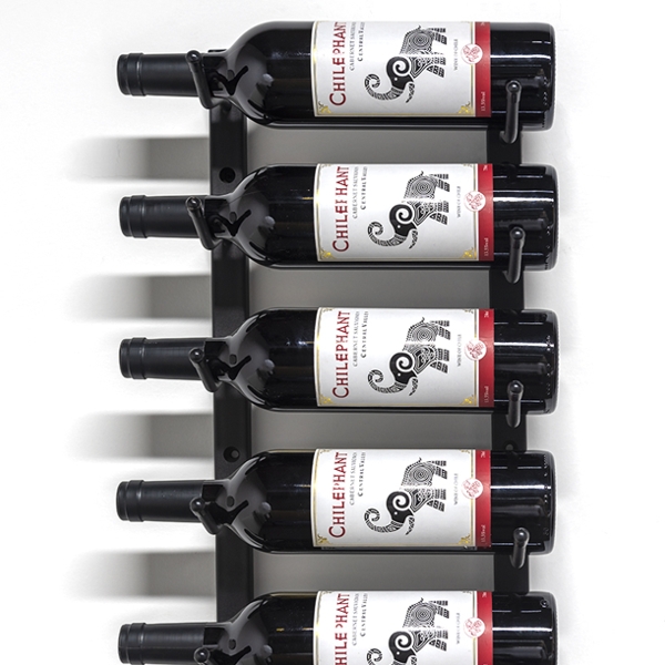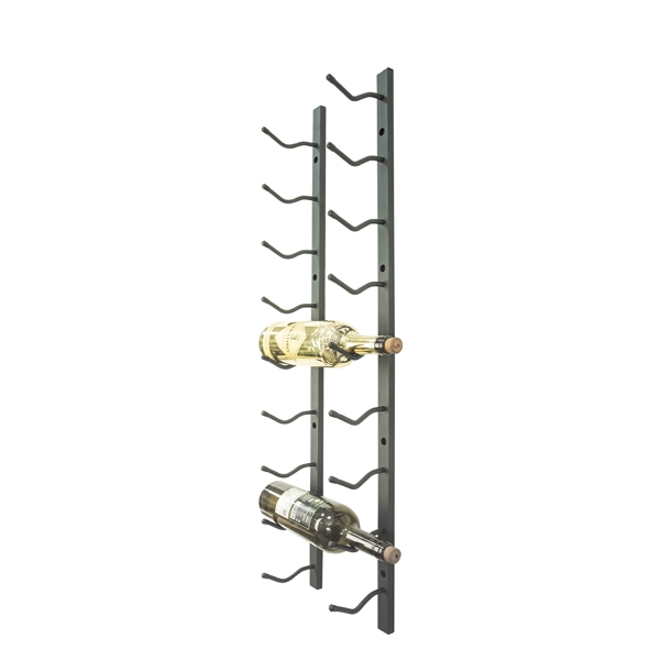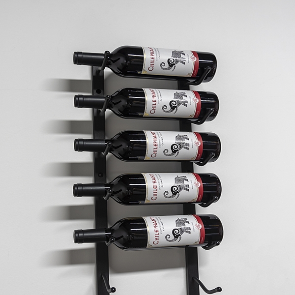 Den solide vægmontering og de specialdesignede stål-arme sikrer, at flaskerne hænger stabilt og sikkert, samtidig med at reolen skaber en flot visuel effekt, der kan løfte ethvert rum – fra vinkælderen til køkkenet eller stuen.