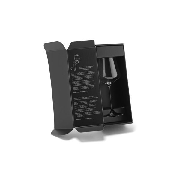 Den lidt koniske, buede form koncentrerer duften. Det tynde glas giver en elegant finesse. Volumen er designet til normal kapacitet.